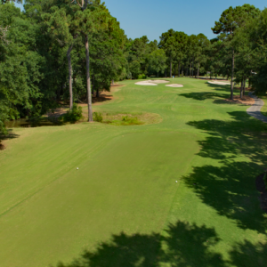 At 158 yards, No. 17 (pictured right) is a little more into most folks’ sweet spots than the short 14th. It’s a big reason why it’s considered one of the easier holes on the entire course. Just the same, don’t get too lax here. Short is trouble. Left is trouble. Right is trouble. Deep? You guessed it: Trouble. Frankly, Jackson was banking on the idea that by this point in the round, you’re warmed up and have a great feel for the clubs.